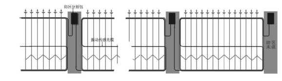振動光纜是通過激光器發光,光信號通過光纜經過光學耦合器是光信號產生兩道干涉信號,信號可利用光纜作為振動傳感載體,實現防護預警探測,當非法入侵信號強度高出預定指標,產生報警信號。振動光纜安裝簡便,可安裝在原有的防護柵網、圍墻、房頂等處,可實現明裝掛網防翻越,安裝地埋防鑿墻等,布線方便靈活,特別適宜在地形復雜的周界環境布防。