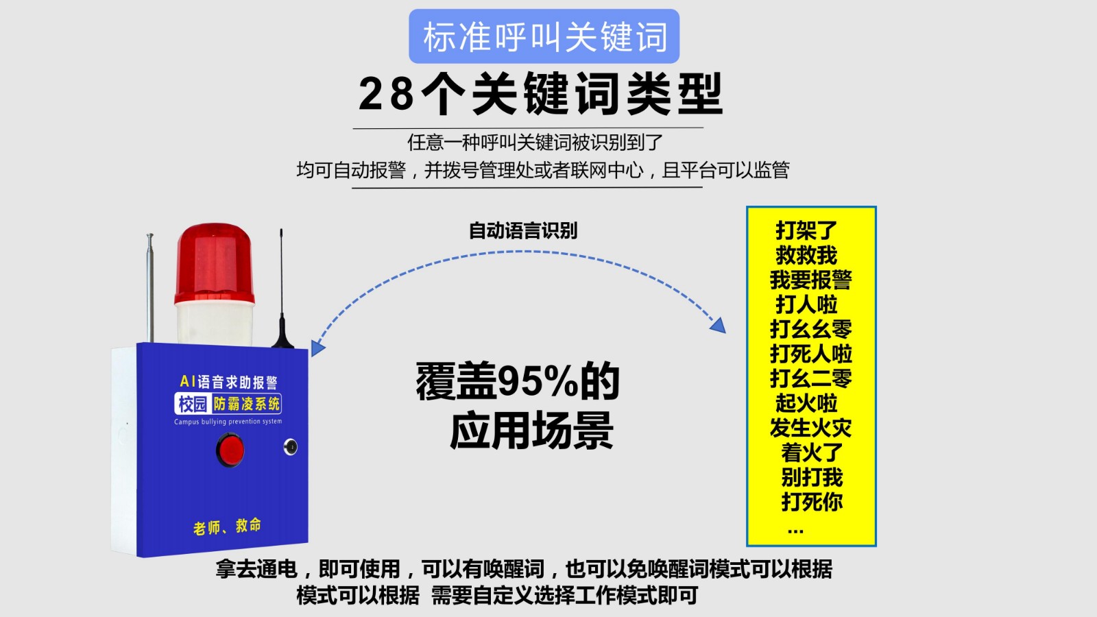 主要應(yīng)用于校園宿舍,操場,樓道,廁所衛(wèi)生間等場所防止校園欺凌發(fā)生