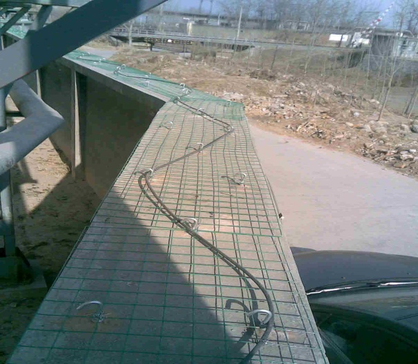 (2) 如果從美觀的角度考慮,可在監(jiān)獄圍墻頂部做一定寬度的鐵絲網(wǎng)(鐵絲網(wǎng)的寬度與墻的厚度一致),將鐵絲網(wǎng)固定在墻頂,再將振動(dòng)傳感光纜綁扎在鐵絲網(wǎng)上,如下圖所示: