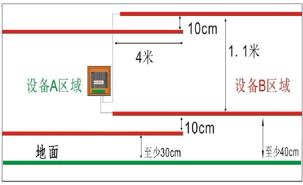 5、 兩套電纜在安裝時應保證相鄰兩套泄漏電纜首尾間有3米左右的重疊區,并且使兩套電纜間在重疊區保持有0.3米左右的間隔。同時相鄰兩套的泄漏電纜的主機的工作頻率應錯開;