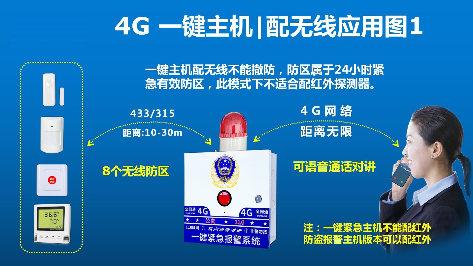 5、 采用自復(fù)位紅外大按鍵,一鍵即可觸發(fā)報(bào)警并自動(dòng)復(fù)位。