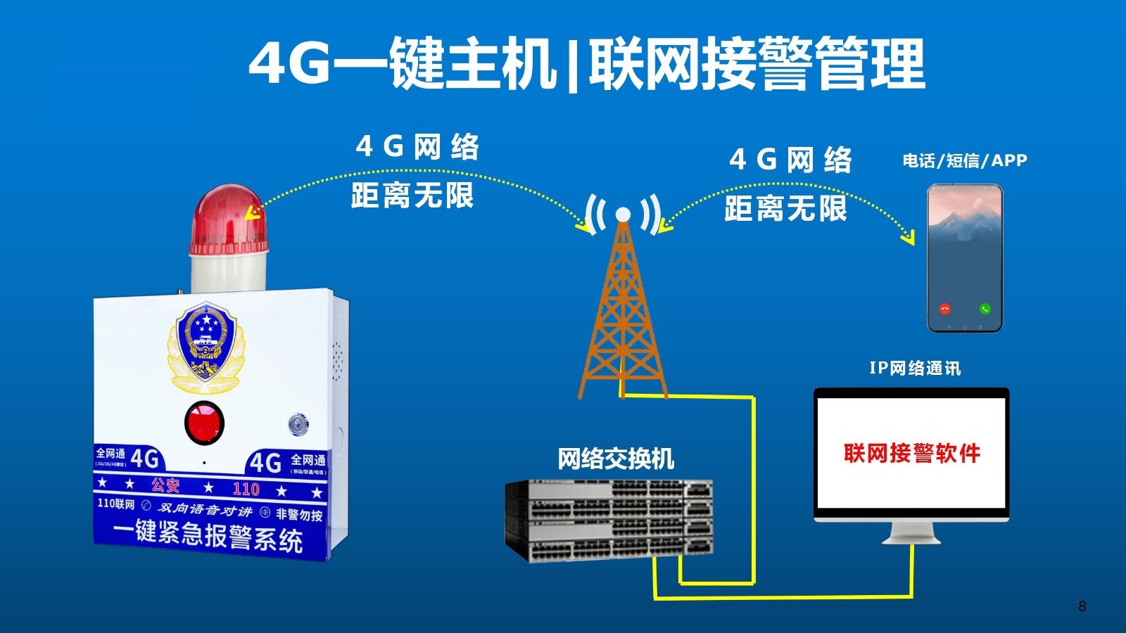 9、 可擴(kuò)展無線有接無線緊急按鈕接入方式,最多可以接入8個(gè)有線緊急,32個(gè)無線緊按鈕,一臺(tái)主機(jī)對(duì)多個(gè)